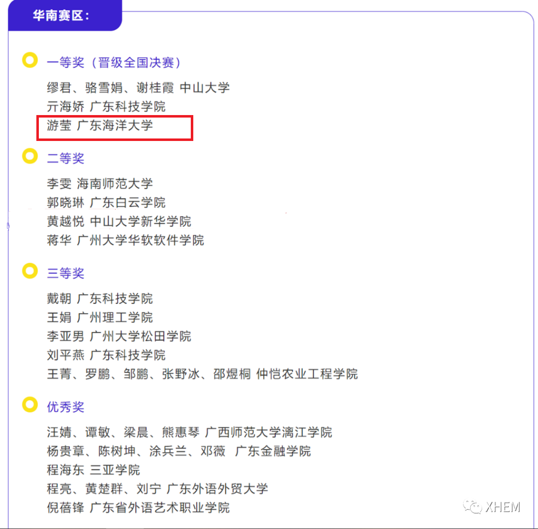 近日,在首届全国翻译技术教学大赛上,太阳成集团tyc33455cc教师游莹荣获华南赛区一等奖。大赛在全国翻译专业学位研究生教育指导委员会、世界翻译教育联盟(WITTA)的指导下,由世界翻译教育联盟翻译技术教育研究会(WITTA TTES)与广东外语外贸大学高翻公司翻译技术教育与研究中心联合主办。此次大赛共分为七个赛区,每个赛区有3-5名业内专家组成评委组进行评审。评委名单提交大赛学术委员会审核同意后,分赛区评委组对各自赛区的作品全程进行匿名评审,最后取评委组的平均成绩进行组内排名,成绩提交全国组委会。全国组委会核对无误后,加入个人选手信息,按照大赛规定的奖项比例产生最终获奖名单。