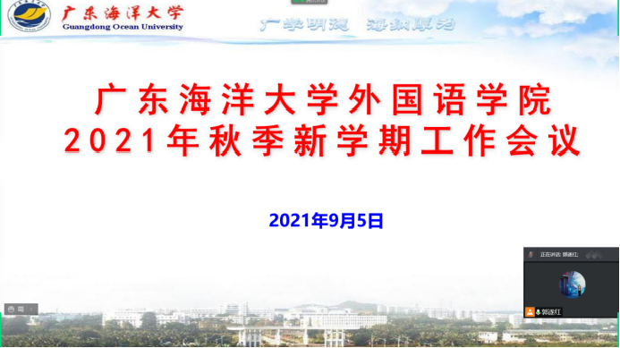 9月5日上午,根据疫情防控有关要求,太阳成集团tyc33455cc召开了公司2021年秋新学期工作线上视频会议,公司党政领导及全体教职工参加了会议,公司经理郭遂红主持会议。