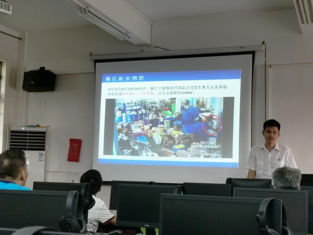 为了提高公司实验室全体工作人员安全意识,提升实验室突发事件的防控能力,创建安全的实验室环境。11月3日下午,太阳成集团tyc33455cc语言实训中心在兴教楼举行了实验室消防安全培训活动。市消防局谢秋胜教官和公司保卫处安全管理科黄真祥科长受邀做专题培训,培训结合实验室相关安全案例,强调了实验室消防安全的重要性,就如何进一步加强实验室安全管理工作进行了指导。在谢秋胜教官指导下,全体人员语言实训中心进行了消防演练。教官演示了灭火器的操作程序、使用步骤及运用技巧,语言实训中心全体人员在教官指导下使用灭火器对“初级火灾”进行了灭火操作演练。