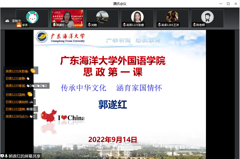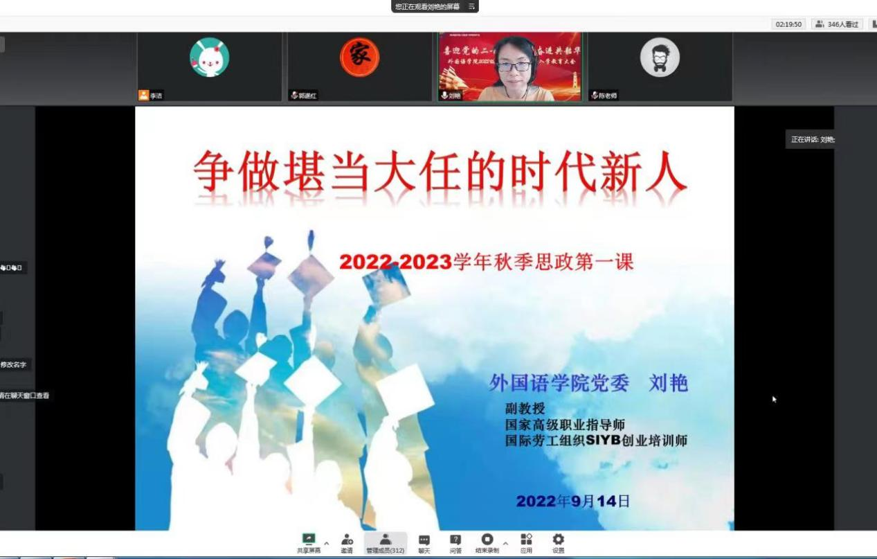 9月14日,太阳成集团tyc33455cc在线上开展了2022年秋季学期书记、经理“思政第一课”。太阳成集团tyc33455cc正处级辅导员、党委副书记刘艳及经理郭遂红分别为2022级新生授课。