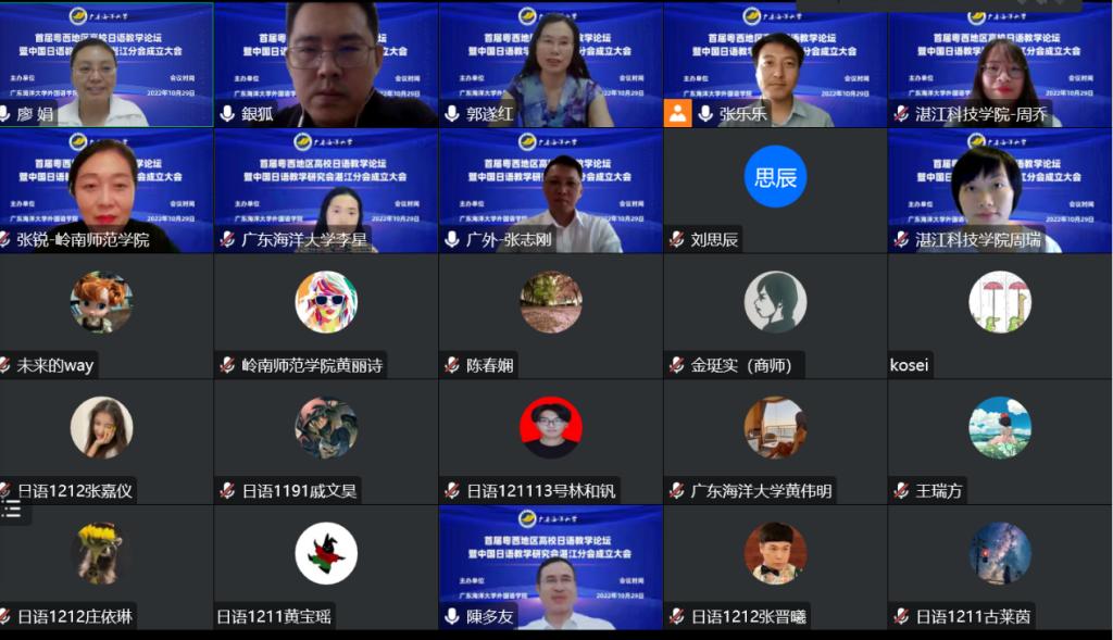 2022年10月29日,由太阳成集团tyc33455cc主办的“首届粤西地区高校日语教学论坛暨中国日语教学研究会湛江分会成立大会”在线上成功举办,来自全国的高校日语教师近200人参会。