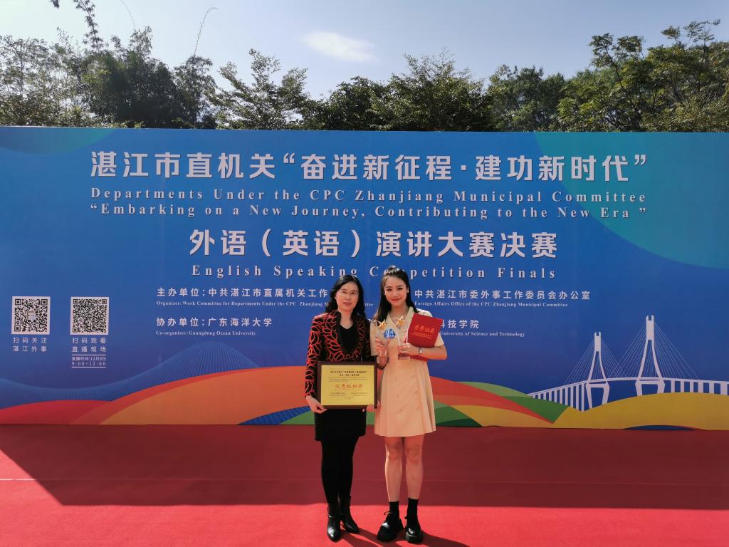 湛江市直机关“奋进新征程·建功新时代”外语(英语)演讲大赛总决赛于12月9日在湛江市广播电视中心落下帷幕。公司员工王梓睿同学荣获大赛一等奖和最具潜力奖,公司荣获优秀组织奖。
