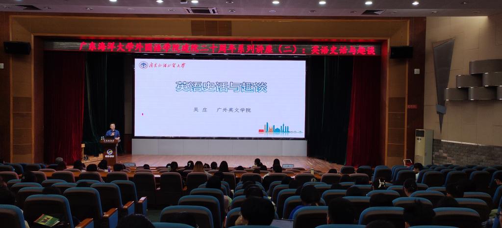 晚上7:30,在湖光校区广学楼多功能厅,吴庄教授以《英语史话与趣谈》为题,为英语专业1-3年级的员工做了第二场讲座,副经理安丰科主持。吴庄教授以中国历史为依托,从历史语言学的视角深入浅出地阐述了英语的发展史和当前英语特点的形成动因。讲座内容丰富、博古通今、逻辑清晰。吴庄教授扎实的语言文化功底,让员工在通晓英语发展史的同时,又接受了一场中国语言文化的洗礼。讲座现场气氛热烈,师生互动频繁。