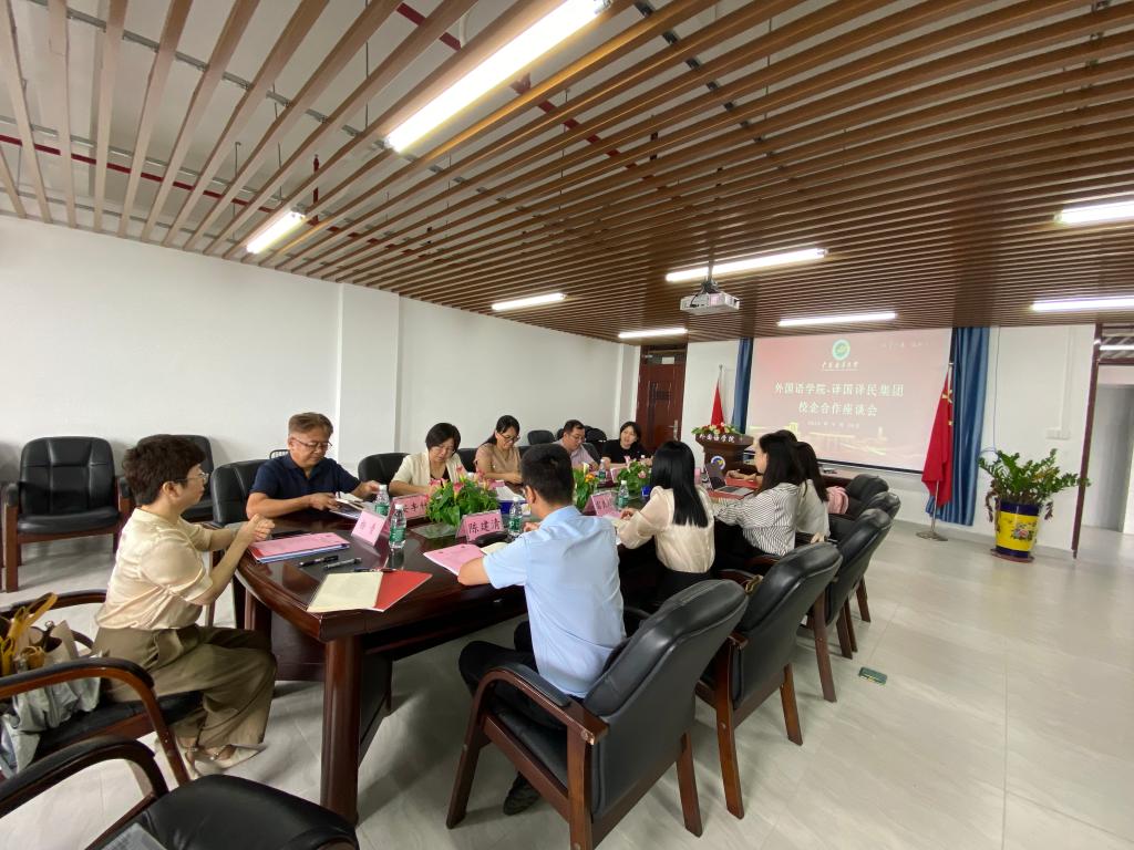 双方举行了校企合作签约仪式,就共建实习就业基地、高层次翻译团队培训达成良好合作关系。会上,大家还围绕CATTI(中国翻译资格证书)证书考前辅导、教学实践平台使用、举办华南区翻译大赛、员工实习实践、人才培养方案修订等进行了深入交流,达成了明确意向。
