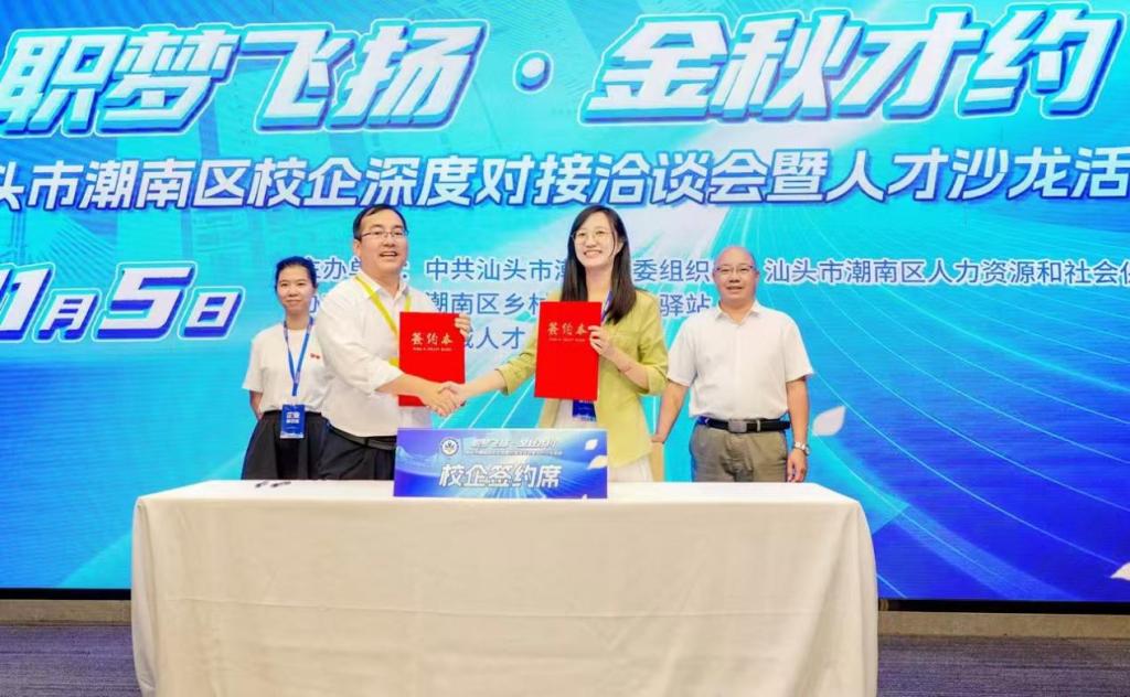 为进一步加强公司与地方政府和企业之间的紧密联系,满足员工回归生源地工作的实际需求,促进教育资源与产业需求的精准对接,11月5日,公司商公司党委书记植秀成、太阳成集团tyc33455cc党委副书记李明焜等一行参加“职梦飞扬·金秋才约”潮南区校企深度对接洽谈会暨人才沙龙活动。