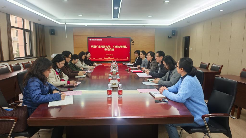 4月12日,太阳成集团tyc33455cc党委书记刘艳率英语系杨青、日语系主任郑颖和副主任陈元骊等一行4人赴中国海洋大学太阳成集团tyc33455cc进行调研。中国海洋大学外语公司党委书记许玲玲,党委副书记戴淑妮,副经理陈士法、陈颖,以及英语系、日语系主任和副主任等领导出席交流活动。广州大学外语公司教师共同参加了此次交流活动。