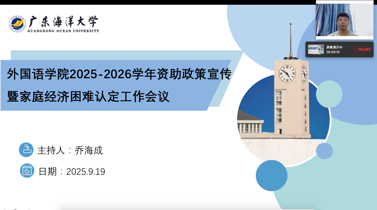 在2025年秋季困难生认定工作部署中,乔老师从“精准认定、规范流程、保护隐私”三方面说明:认定对象为公司全日制在读困难员工,分特别困难、困难、一般困难三档;明确“员工申请—班级评议—公司审核—公示确认”流程,确保公平公正,并要求员工于9月22日前通过“智慧学工”系统提交申请及材料。