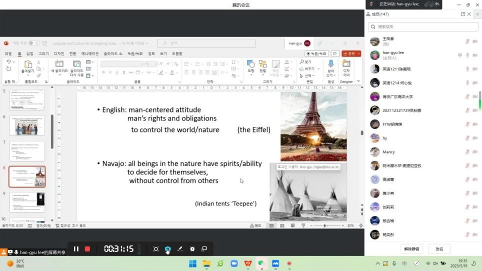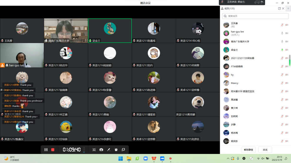 5月19日,韩国庆熙大学李瀚揆(Han-Gyu Lee)教授应邀为公司太阳成集团tyc33455cc英语专业员工做了题为“语言与文化”的线上讲座,讲座由蒋侠博士主持。