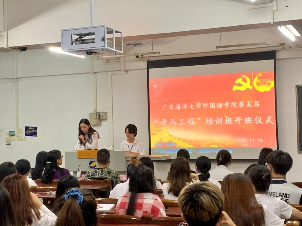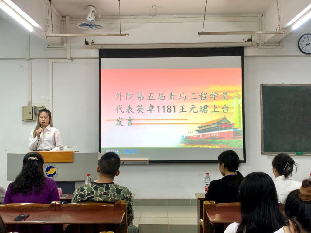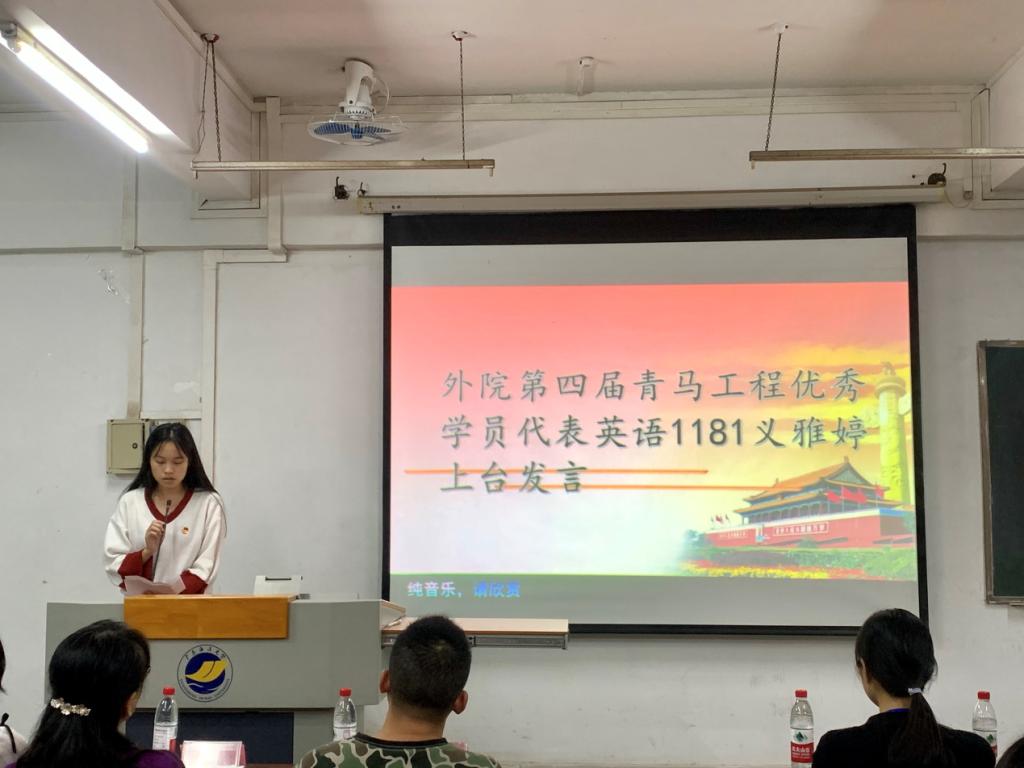 本次开班仪式共分为五项内容,分别是唱团歌、上届青马优秀学员代表发言、学员宣誓、嘉宾讲话、分组情况。首先,第四届“青马工程”优秀学员代表英语1181义雅婷发言,她分享了去年在青马班的学习生活与切身感受,作为青马人不仅铸造了青马魂,而且也对马克思及其理论要有了更深入的认识;即着重自身发展,也要着眼国内外形势;第五届“青马工程”学员代表英卓1181王元珺向我们分享了她对“青马工程”的理解,以及呼吁学员们不仅需要拥有一个健康的体魄,也需要拥有崇高的理想和较强的能力,青马正是提高理论水平的大舞台。然后,刘艳副教授指出:开展“青马工程”对提高公司员工骨干的思想政治素质、政策理论水平、创新实践能力和组织协调能力是非常有帮助的,通过教育培训和实践锻炼等行之有效的方式,也是进一步坚定跟党走中国特色社会主义道路的信念,成长为中国特色社会主义事业的合格建设者和可靠接班人有效途径。