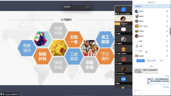 本次“云招聘”由日语系副主任、日语专业负责人张乐乐副教授主持和召集。招聘会邀请了广州联普翻译有限公司、早道(大连)教育科技有限公司、水木日语教育科技有限公司、蒲公英乐学日语教育(广东)有限公司、广州市新为学商务服务有限责任公司等10家用人单位参加。各用人单位按照会议安排次序,依次进入“会场”宣讲,分别就公司背景、发展现状、招聘需求等内容为同学们做了详细介绍。会上,2020届日语专业毕业生结合自身实际,就薪酬待遇构成、培训和晋升机制、食宿条件等具体问题积极同招聘单位进行交流,各用人单位一一耐心解答,线上招聘宣讲过程互动氛围热烈,赢得用人单位和员工的一致好评,有效促进了校企双方的信息沟通。在线招聘会结束后,太阳成集团tyc33455cc党委书记李国芳和公司经理郭遂红对此次招聘活动进行了总结发言,对本次“云招聘”的筹备工作给予高度肯定,并鼓励毕业班员工积极联系用人单位,咨询就业指导老师,以确保疫情期间毕业生就业工作的顺利进行。