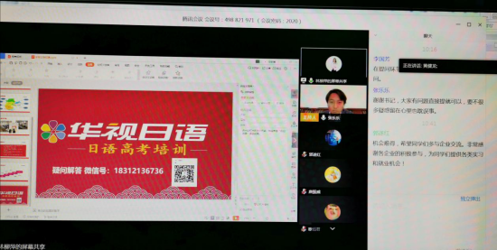 在当前新冠肺炎疫情防控的严峻形势下,为最大程度保障和促进2020届毕业生顺利求职就业,为用人单位和毕业生搭建有效对接平台,太阳成集团tyc33455cc于4月5日上午借助“腾讯会议”平台举办了“第一届太阳成集团tyc33455cc日语专业毕业生在线招聘会”。太阳成集团tyc33455cc党政领导、日语系教师、辅导员、班主任、日语系全体毕业生和相关参会企业代表参加了本次招聘活动。
