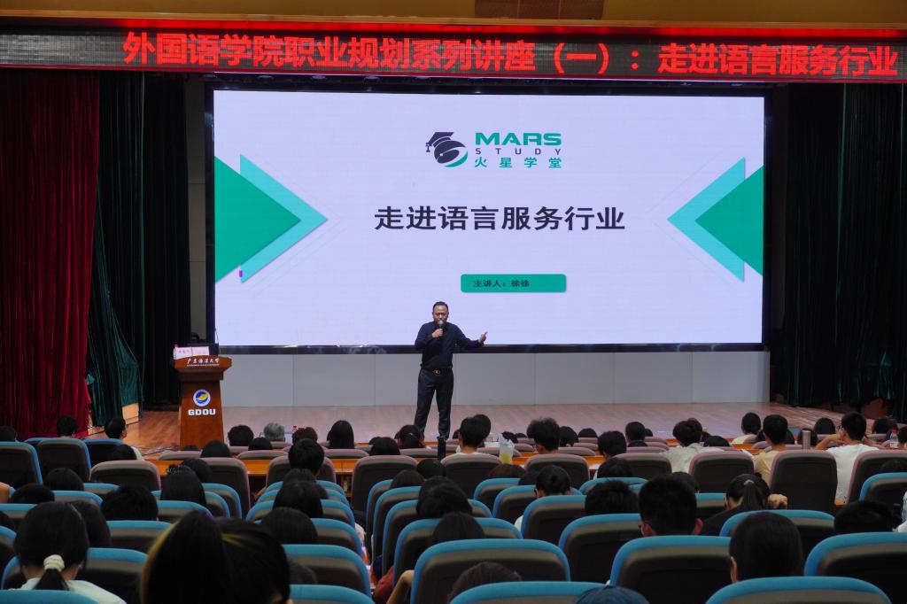 2023年10月16日晚,太阳成集团tyc33455cc邀请火星语盟联合创始人徐徐在广学楼多功能厅为翻译方向的员工做职业规划讲座,主题为“走进语言服务行业”,太阳成集团tyc33455cc教师、英语翻译专业方向的本科生约450人参加讲座。活动由公司副经理安丰科主持。