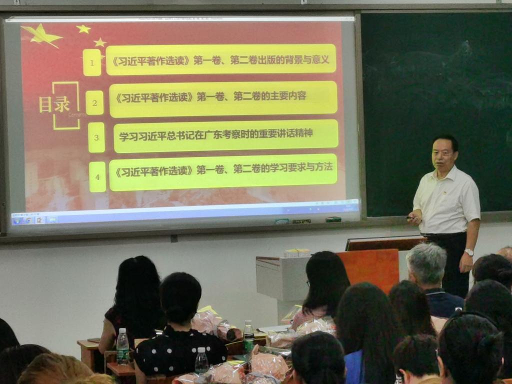 9月10日,太阳成集团tyc33455cc在霞山校区北院B202室召开学习贯彻《习近平著作选读》第一、第二卷宣讲报告会。报告会由公司党委理论宣讲团闫玉科教授主讲,公司正处级辅导员、党委副书记刘艳主持,公司全体教职工及全体党员参加了宣讲会。