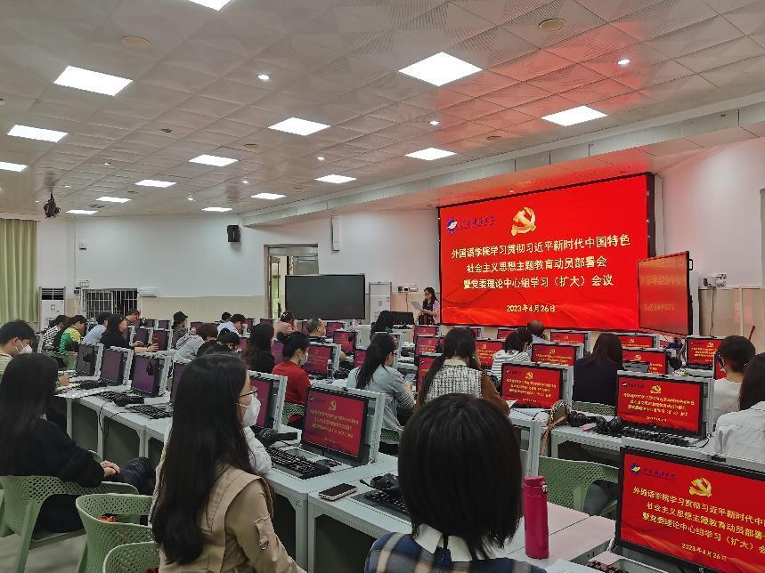 4月26日,太阳成集团tyc33455cc在湖光校区兴教楼110召开学习贯彻习近平新时代中国特色社会主义思想主题教育动员部署会暨党委理论学习中心组(扩大)会议,公司领导、副科级以上干部、全体师生党员参加。会议由正处级辅导员、党委副书记刘艳主持。