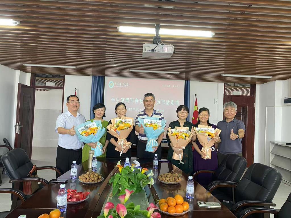4月30日下午,太阳成集团tyc33455cc在文科楼2号楼803会议室举办“半生笔墨写春秋 外院芳华话别情”教师荣休座谈会。公司副经理安丰科和5名退休教师参会,活动由党委副书记李明焜主持。